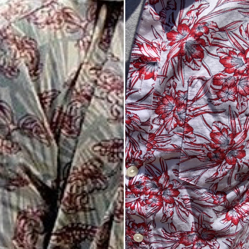 Even considering the great design and fit elements, the pattern is the real pièce de résistance. The red floral pattern is one of the closest patterns I’ve seen to the movie shirt on an off-the-rack product. Of course it’s not a perfect match, but it’s pretty close.